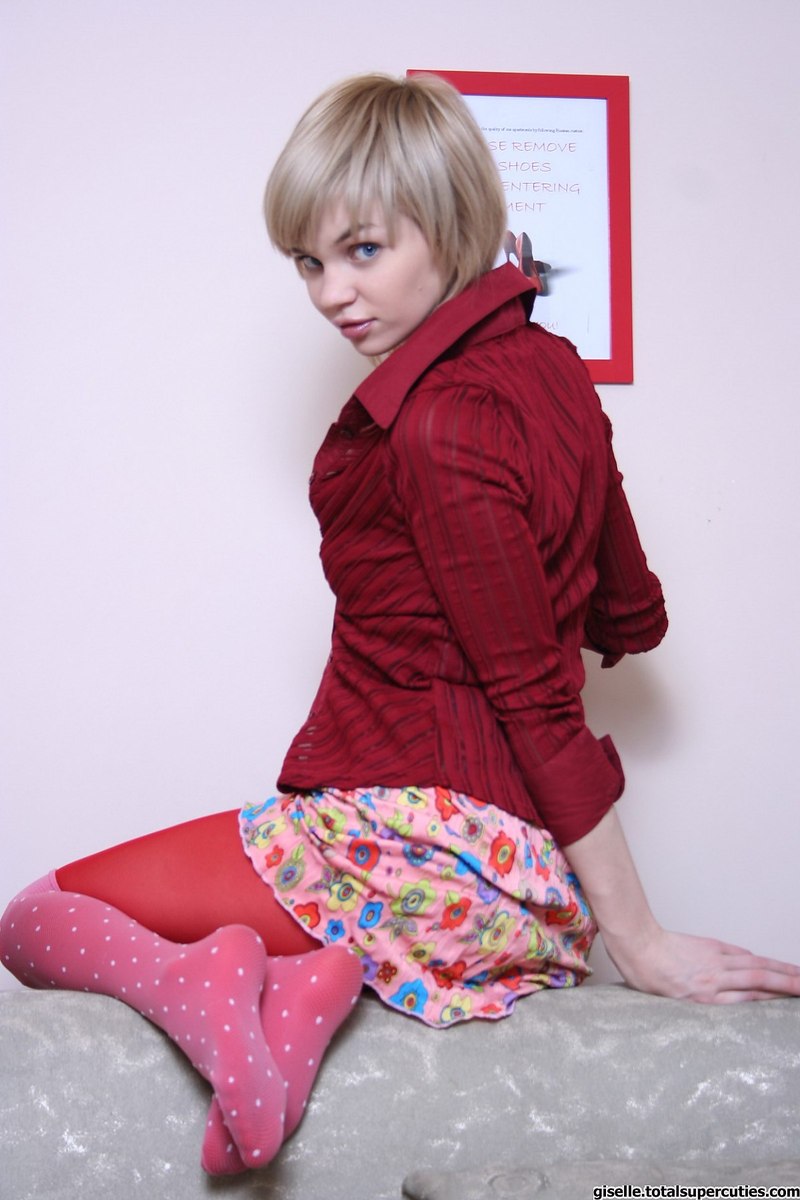 Pretty Teen In Red Stockings And Pink Socks